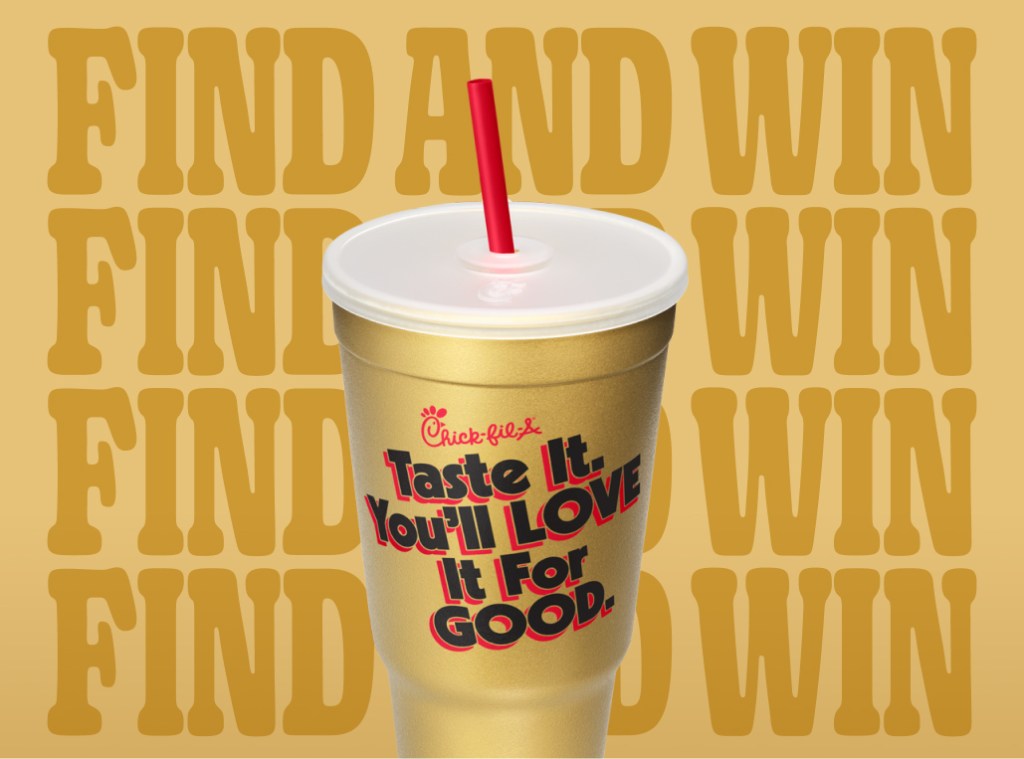 NO PURCHASE NECESSARY. Legal residents of the 50 United States (D.C.) 18 years or older. Collectible cups available while supplies last. Promotion ends 7/1/26. Odds of winning are 1: 1,867. See Official Rules for how to enter by mail, prize terms & prize claim requirements including that you must be Chick-fil-A One® member. Void where prohibited.