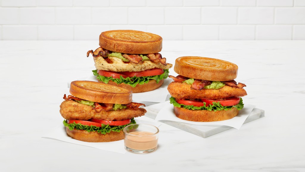 The Avocado Sriracha BLT Sandwich features our freshly breaded original filet, served on toasted Sriracha Swirl Toast. It is served with lettuce, tomato, seasoned avocado mash and strips of hardwood smoked bacon. Cayenne ranch is served on the side for an extra kick. Guests may also order the sandwich with the spicy or grilled filet if preferred.