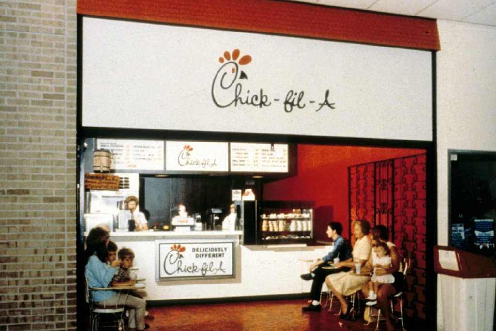 Truett Cathy founded and opened the first Chick-fil-A® restaurant in 1967 in Atlanta’s Greenbriar Mall, one of the first indoor malls in the southeast. At the time, the original Chick-fil-A® Chicken Sandwich was sold for 59 cents and Team Members wore ascots, candy-striped aprons and “soda jerk” hats and ties. The restaurant was only 384 square feet (roughly the size of a two-car garage) and was a pioneer in the modern-day food court.
