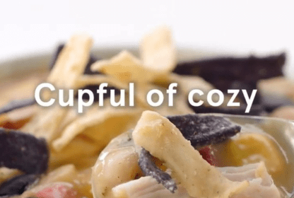 Cozy up with a warm cup of Chicken Tortilla Soup and a good story.