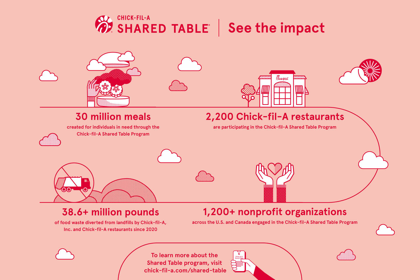 - 30 million meals created for individuals in need through the Chick-fil-A Shared Table program since 2012