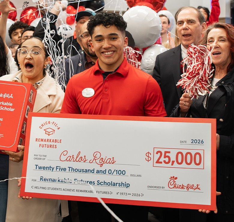 These 13 deserving Team Members are truly amazing. Through their dedication and hard work in school, in the restaurant and in the community, they were chosen as the winners of the the $25,000 Remarkable Futures Scholarship. Local Chick-fil-A Owner-Operators, Interim Managers or Executive General Managers recommended each nominee, and Scholarship America and an external committee of educators, entrepreneurs and executives chose the final winners. Congratulations to this year’s scholars!