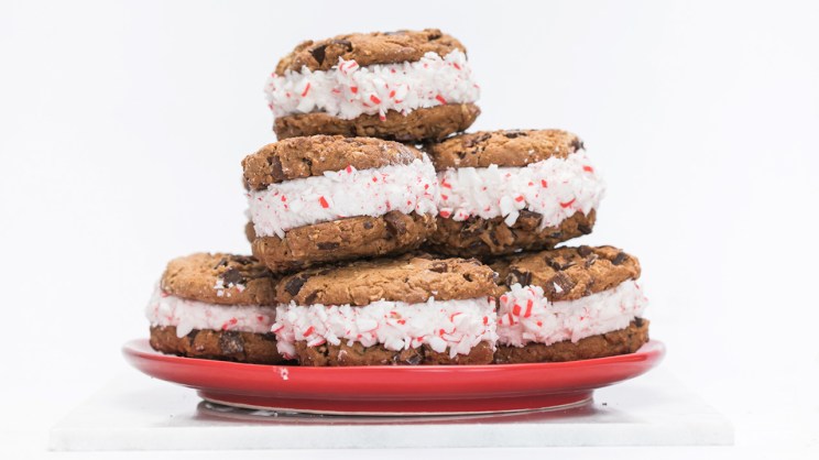 - Carefully cut Chocolate Chunk Cookie in half and flip over.
