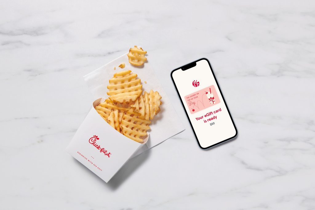 Show your gratefulness with a gift card. Chick-fil-A eGift cards are an easy, same-day way to make their day. Send deliciousness and thankfulness straight to their inbox.